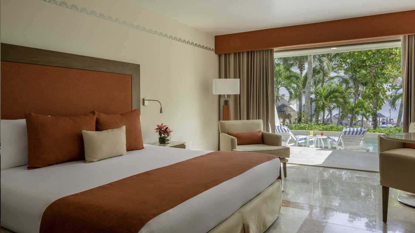 The Deluxe Swim Up Ocean View Rooms at Grand Park Royal Cancún are located on the ground floor of the resort's main building, Deluxe Swim-Up Oceanview rooms are ideal for those wanting a truly special vacation experience. Suites boast large floor-to-ceiling windows and direct access to your own pool. Discover all these suites have to offer while enjoying the best of Cancun.